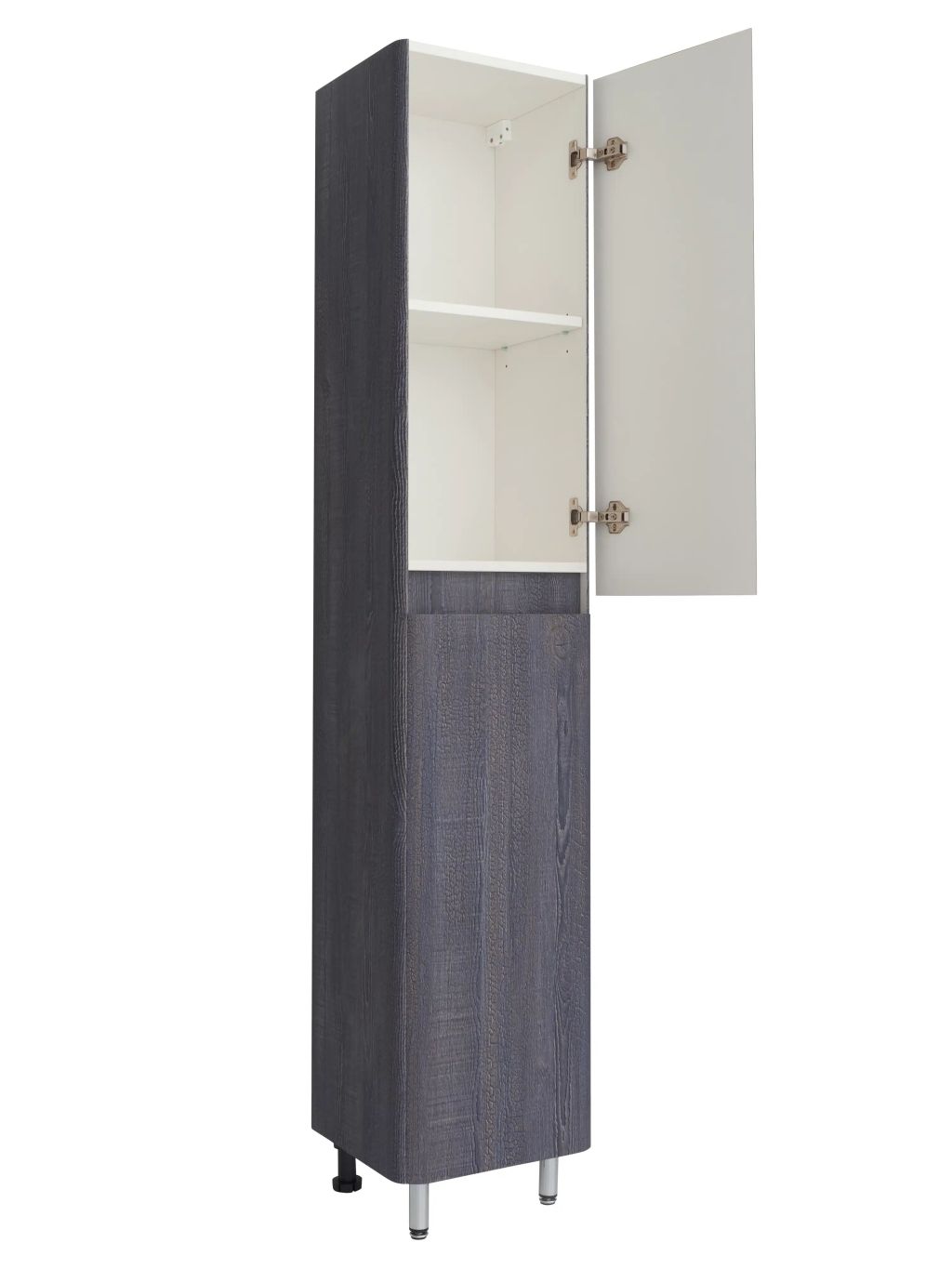 Шкаф-пенал поставляется в собранном виде. В комплектацию входят 4 ножки, которые устанавливаются самостоятельно, а также комплект для крепления пенала к стене.