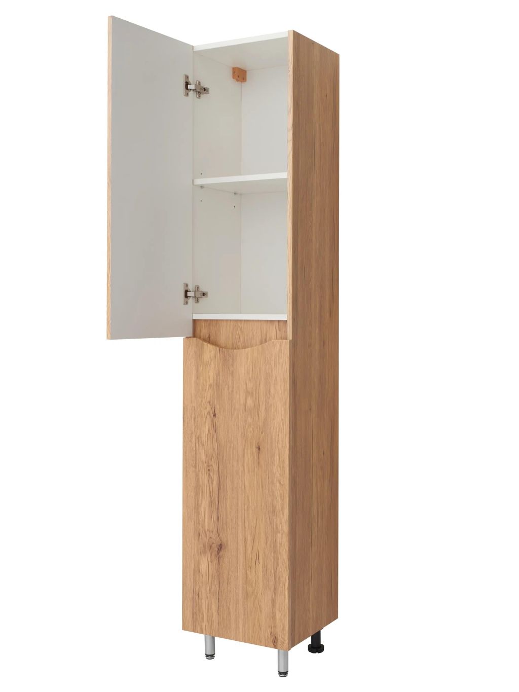 У пенала две дверки, оснащенные доводчиками, которые открываются вправо. Шкаф-пенал поставляется в собранном виде.