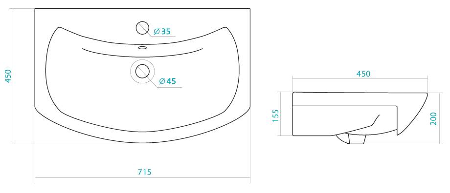 | Тип раковины | Подвесная |
