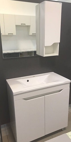 Тумба АБИГЕЛЬ-80,2 двери ,белый глянец+раковина Milen-80,Stella Polar.