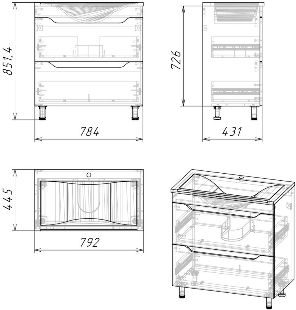 Комплектация: удобное открывание за фасад, петли с доводчиком, опоры регулируемые металл.