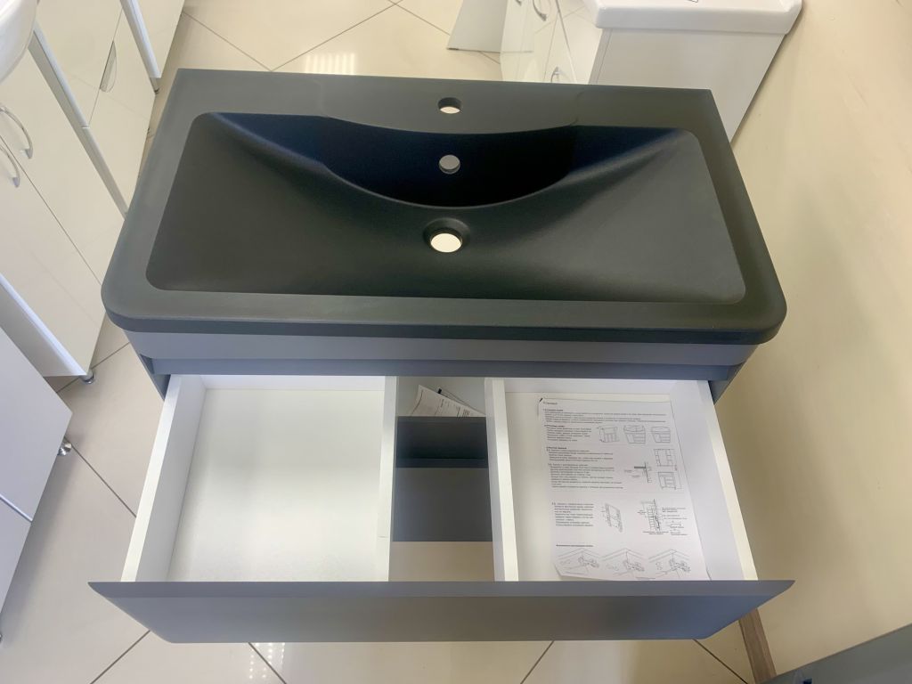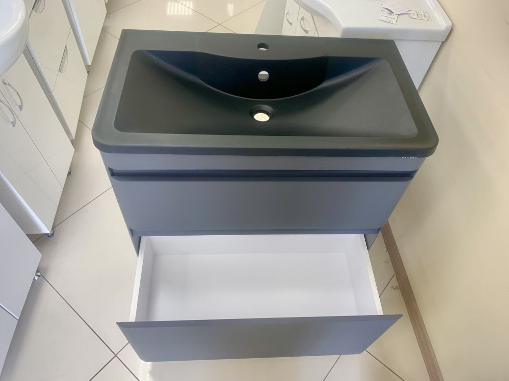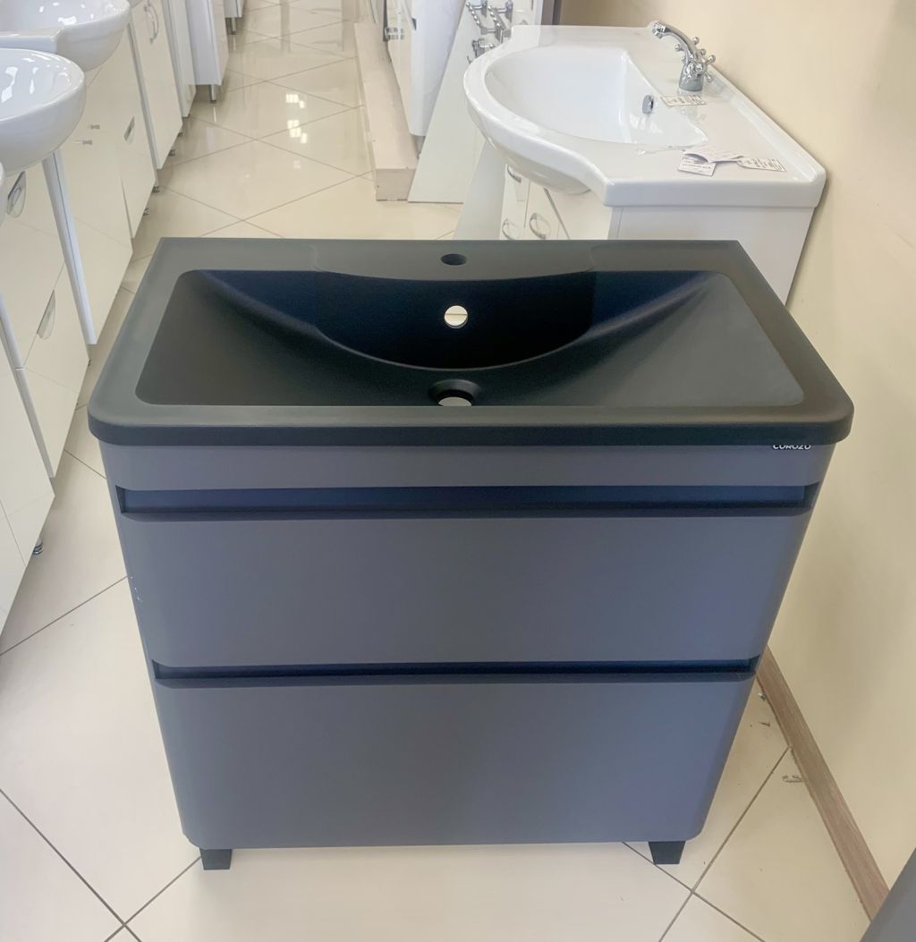 Тумба АЛАБАМА-80 Z2 графит + раковина Антигуа черная, Stella Polar.