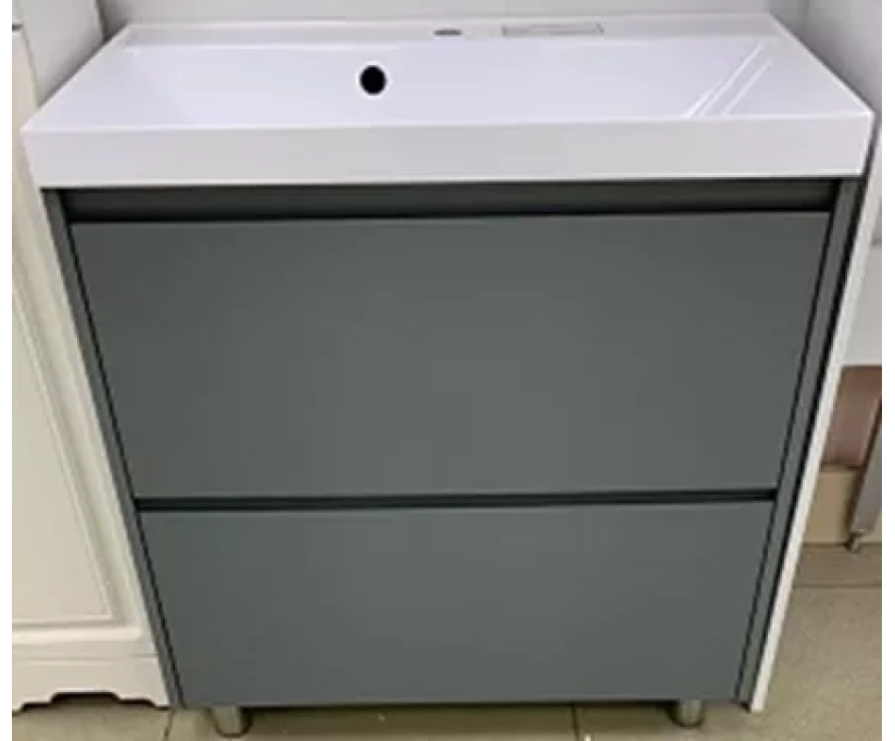 Тумба БОРНЕО-70,2 ящика,Люкс графит матовый+раковина Слим-70,Stella Polar.