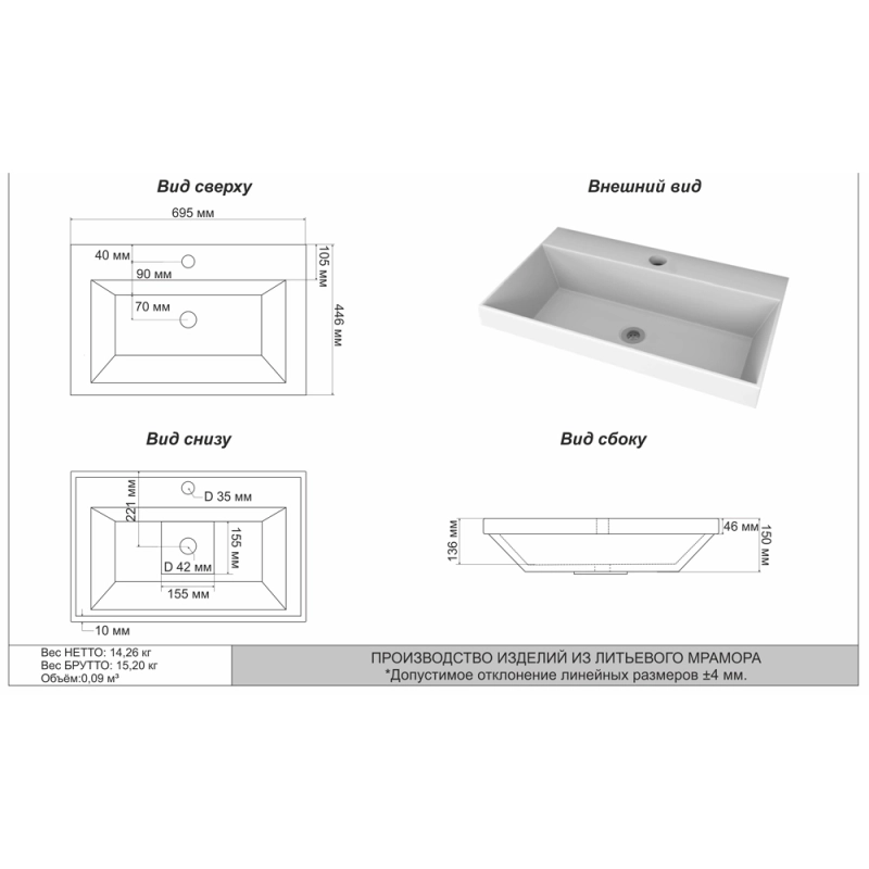 Изделие выполнено из влагостойкого ЛДСП премиум-класса "Lamarty", что обеспечивает превосходный внешний вид и значительно увеличивает срок эксплуатации.