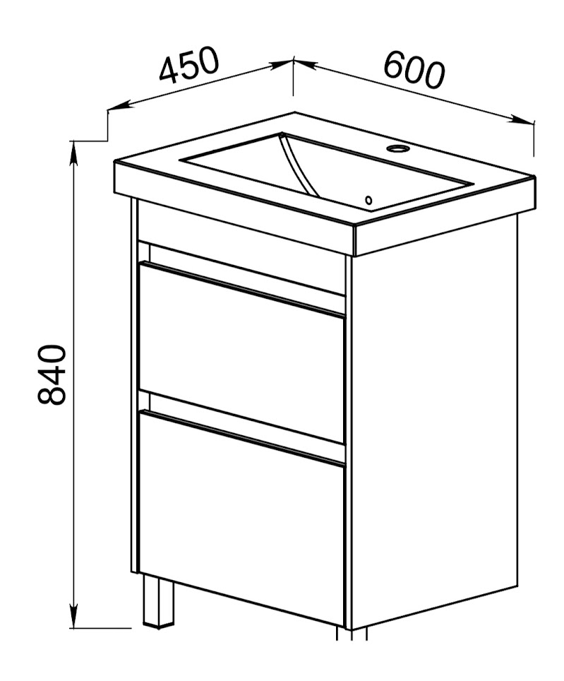 Тумба напольная "Диана 60", черная, раковина Фостер 60.Материал раковины санфаян, форма прямоугольная, одно отверстие под смеситель, с отверстием под перелив.