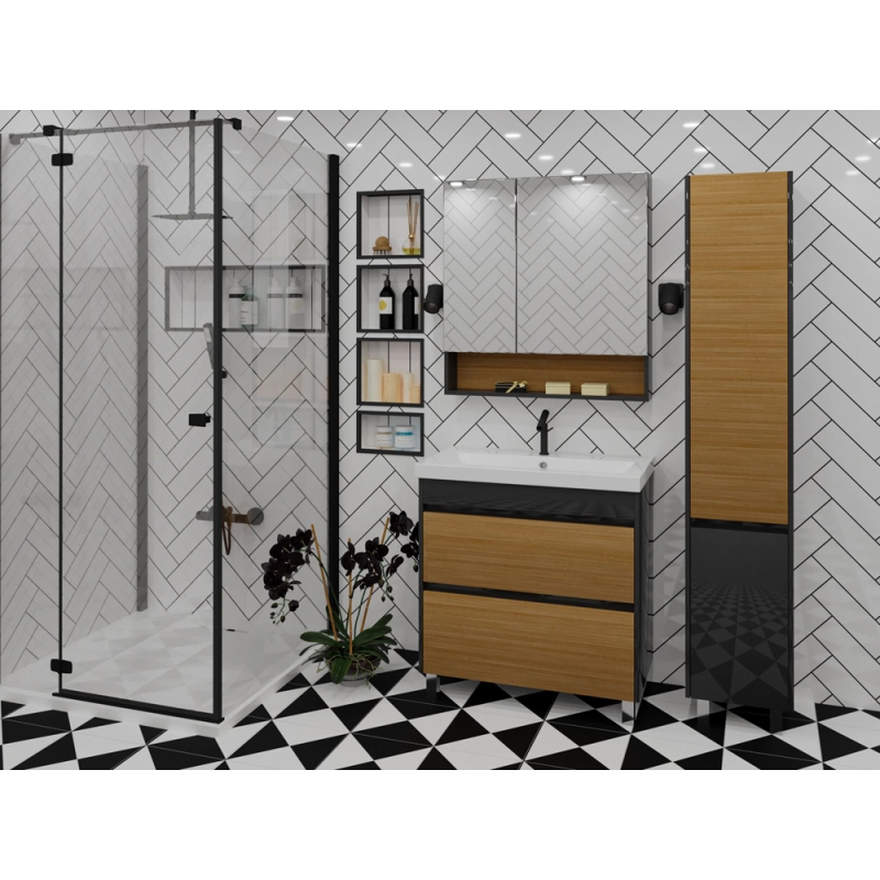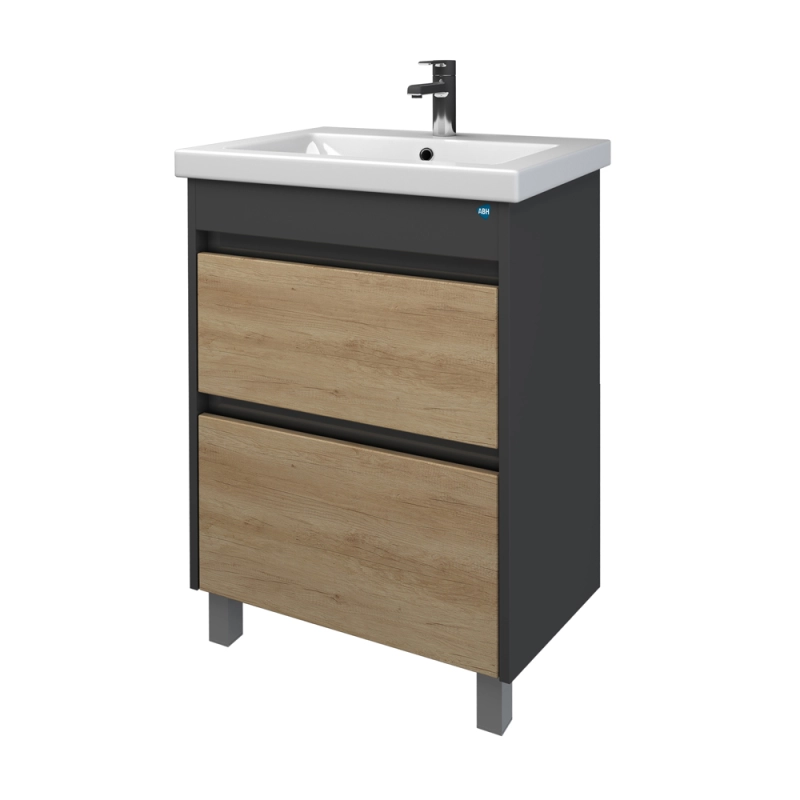 Тумба ДИАННА-60 сонома/черная+раковина Фостер-60,Stella Polar.