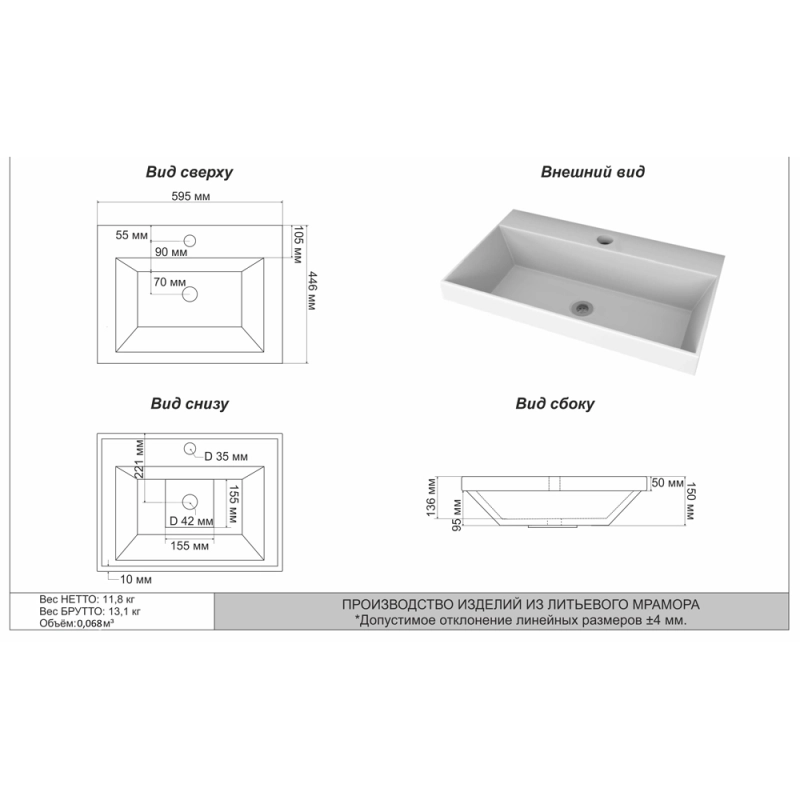 Изделие выполнено из влагостойкого ЛДСП премиум-класса "Lamarty", что обеспечивает превосходный внешний вид и значительно увеличивает срок эксплуатации.