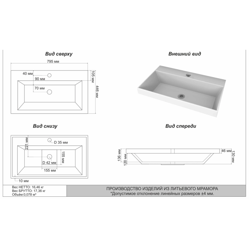| Форма | Прямоугольная |