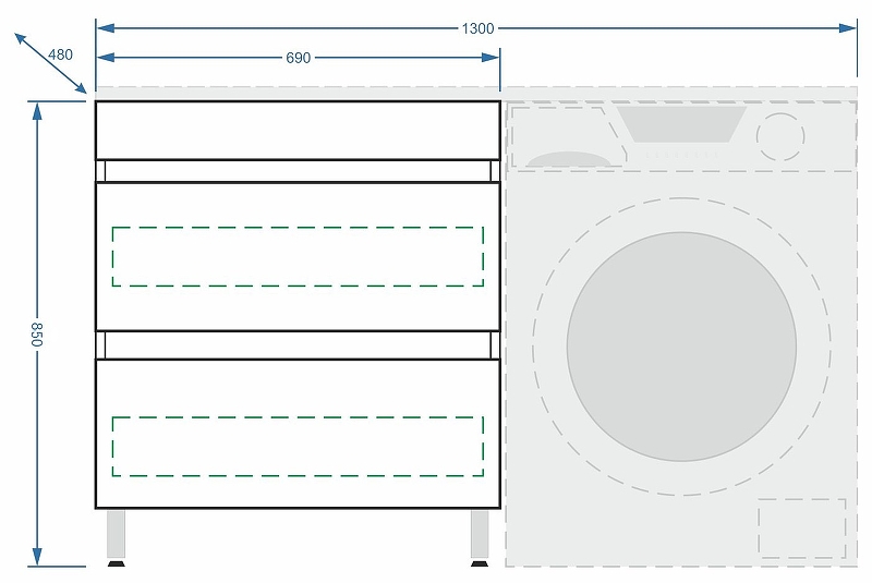 -Монтаж: напольный. Размеры (ШхВхГ): 130х 85 х 48 см.