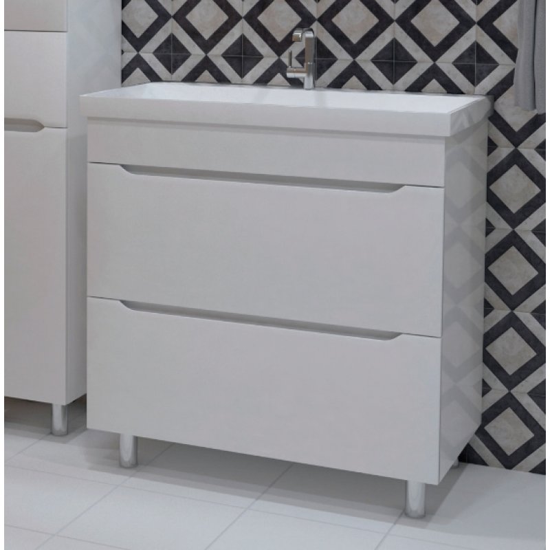 Тумба РИАННА-100 2ящ, белая+ раковина СЛИМ,Stella Polar.