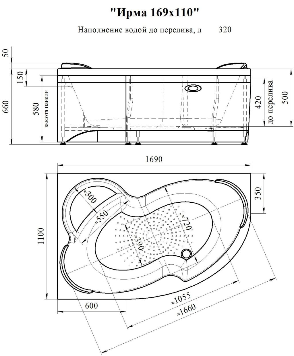 Ванна акриловая ИРМА 169*110*66L,Radomir.