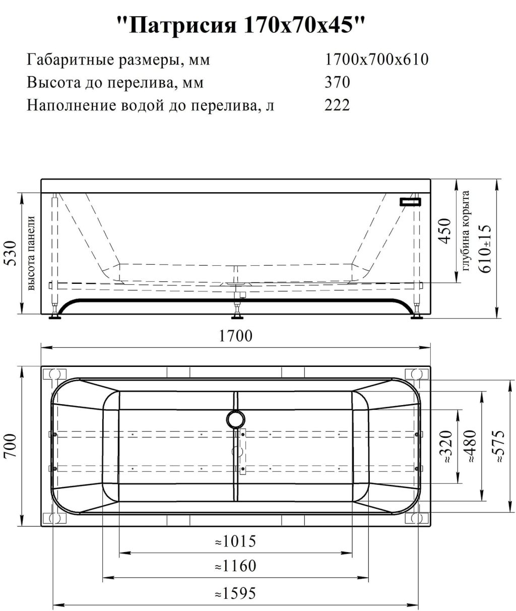 Ванна акриловая ПАТРИСИЯ 170*70*61, Radomir.