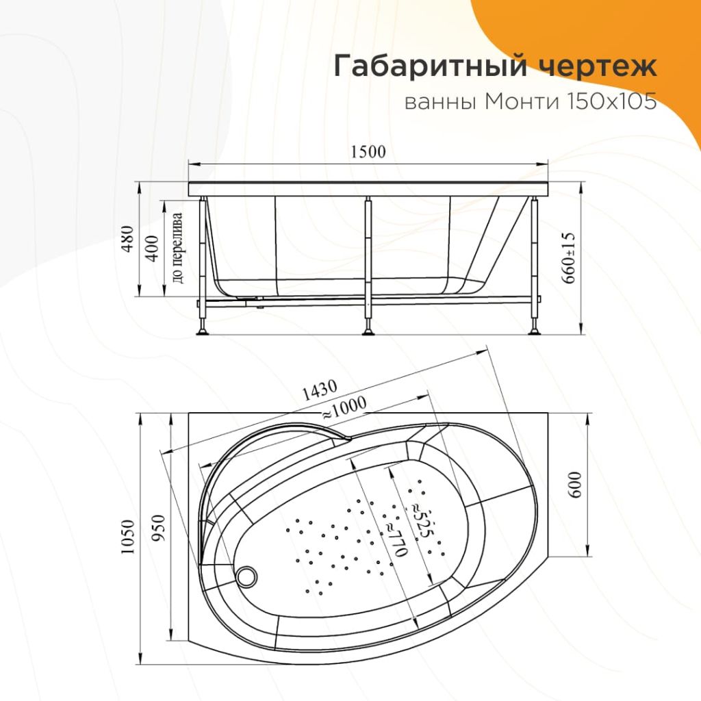 Ванна акриловая МОНТИ 150х105*66 R, Radomir.