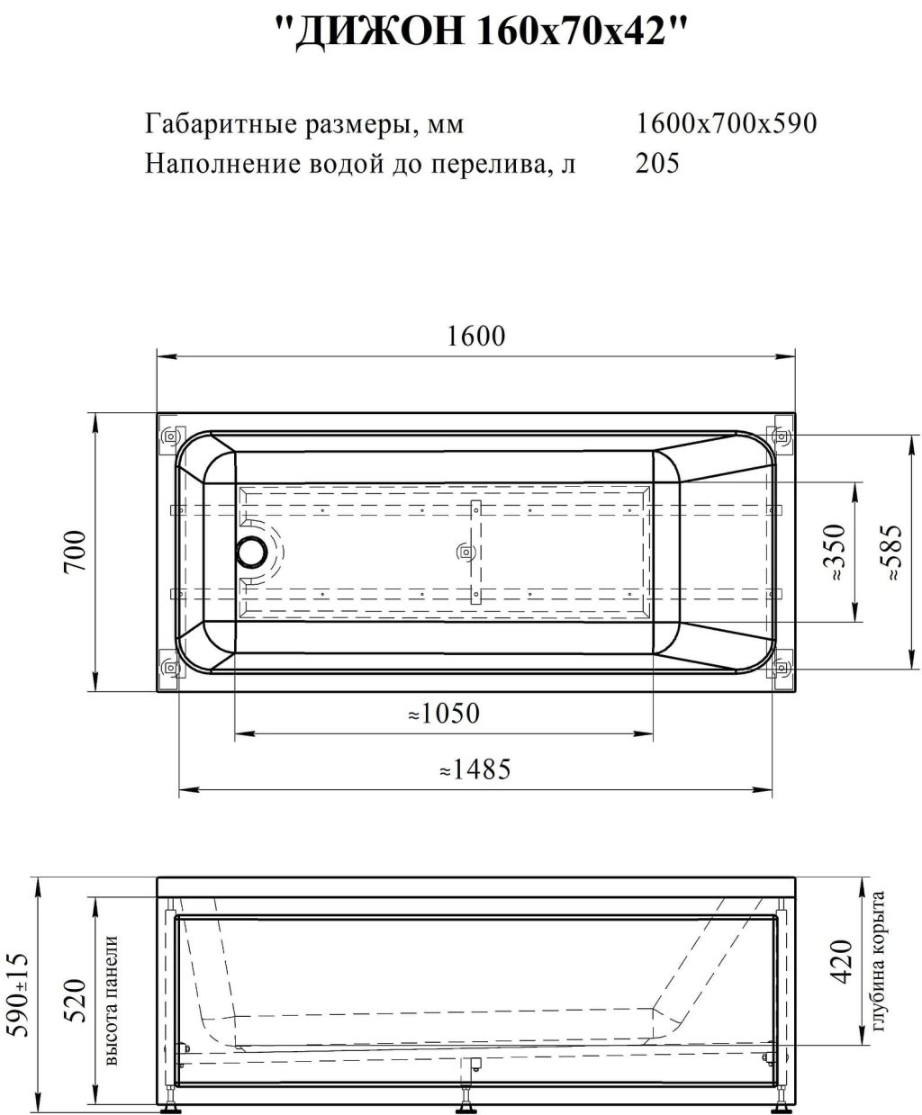 Ванна акриловая ДИЖОН 160*70*59, Radomir.