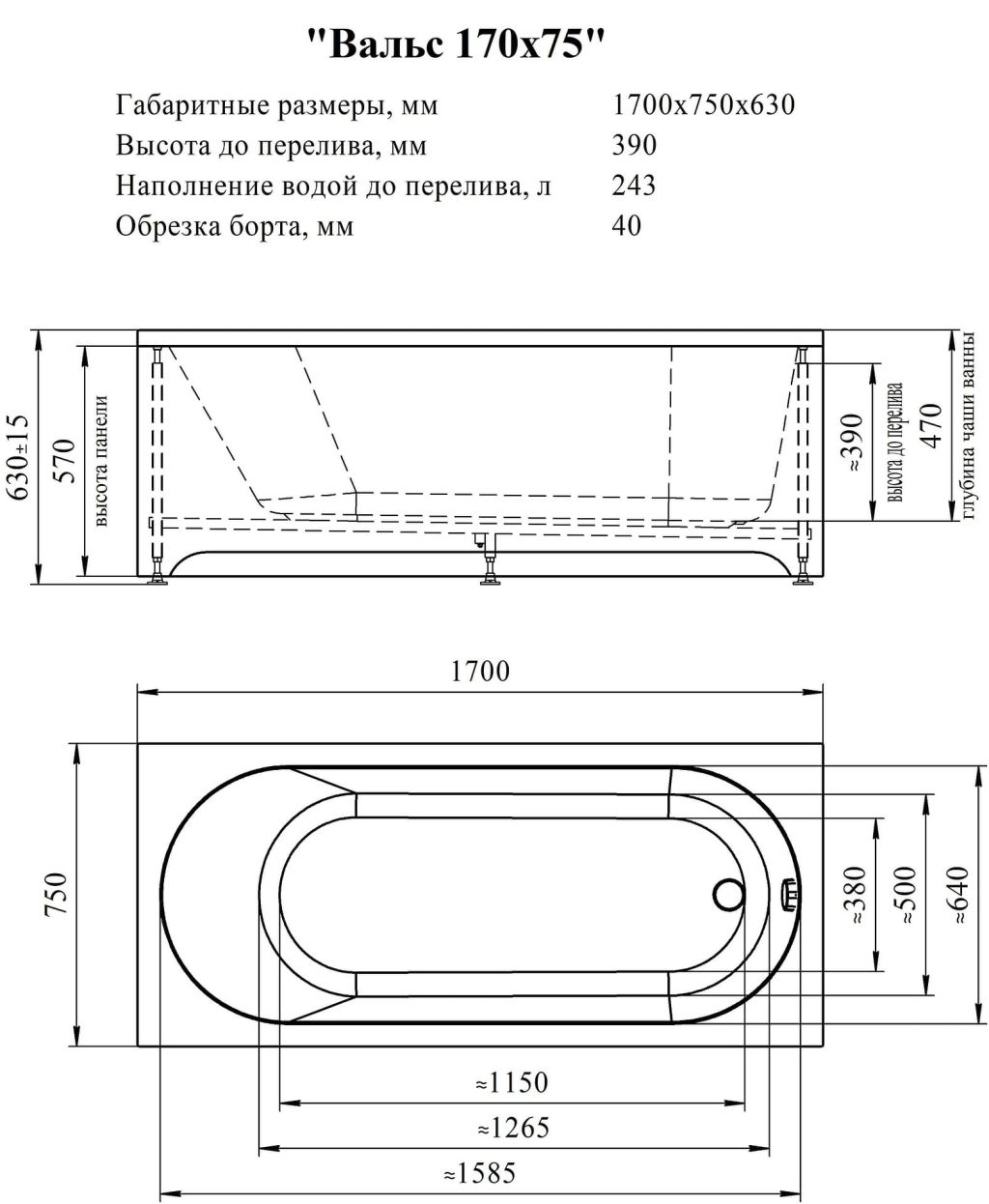 Ванна акриловая ВАЛЬС 170*75*63, Radomir.