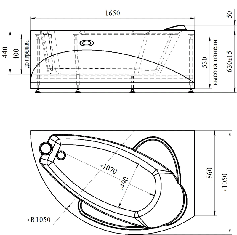 Ванна акриловая ВАРНА 165*105*63L, Radomir.