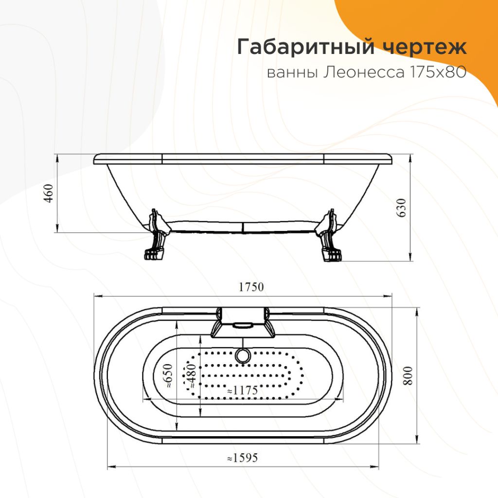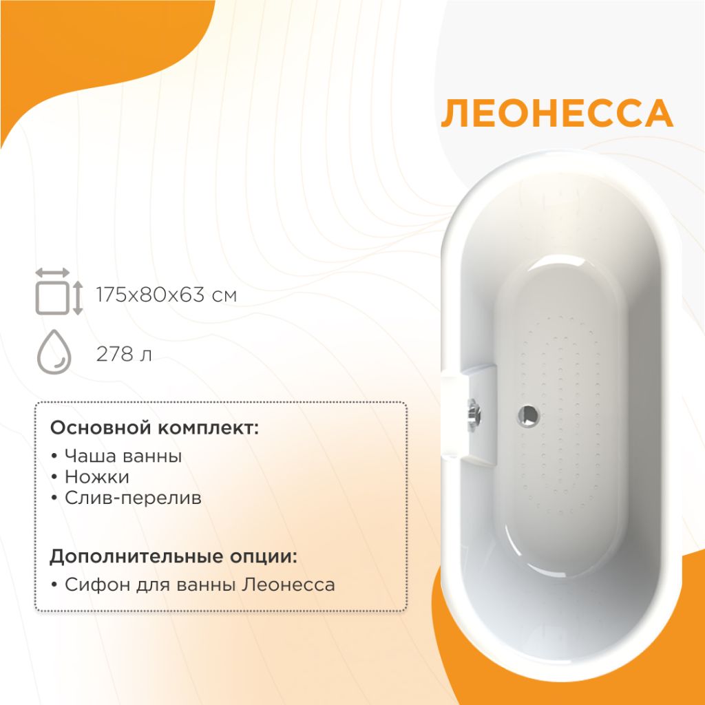 Ванна акриловая ЛЕОНЕССА 175*80*63,Radomir.