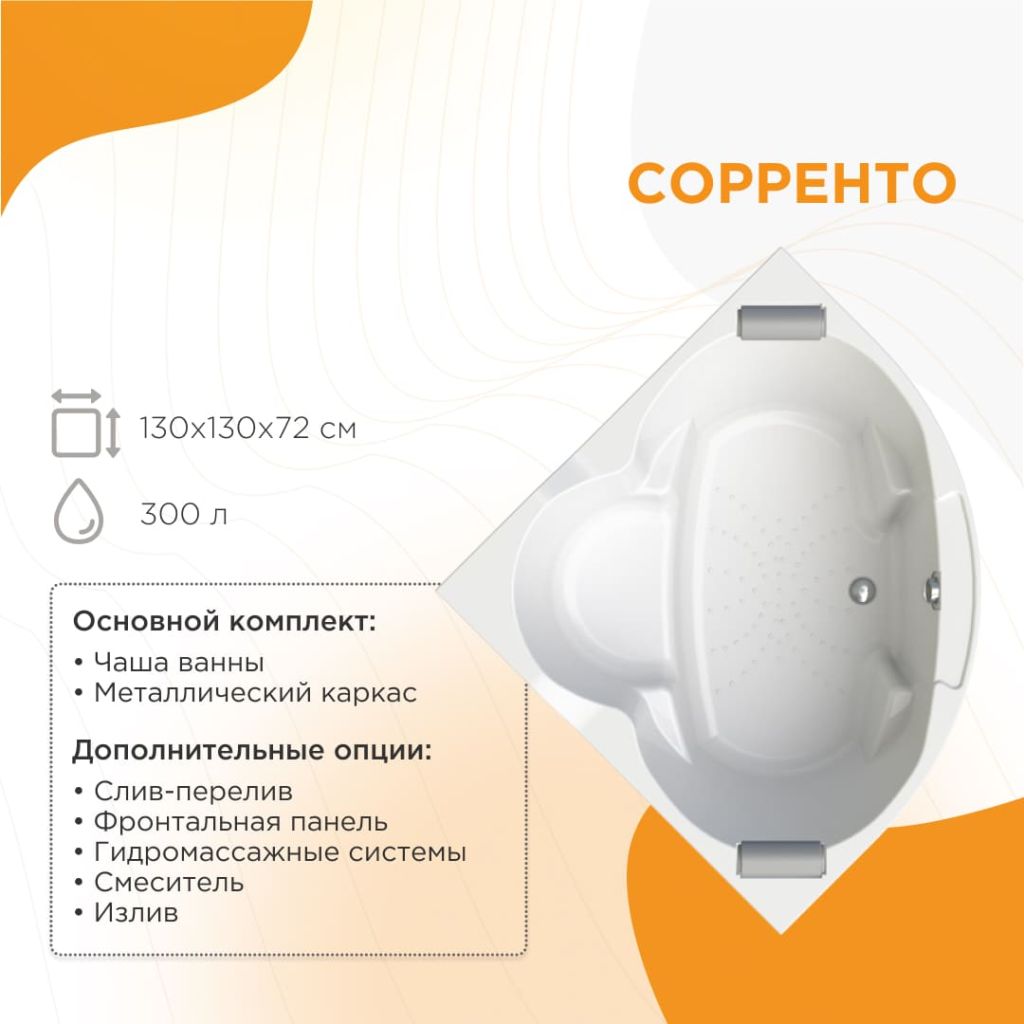 Ванна акриловая СОРРЕНТО 130*130*72,Radomir.