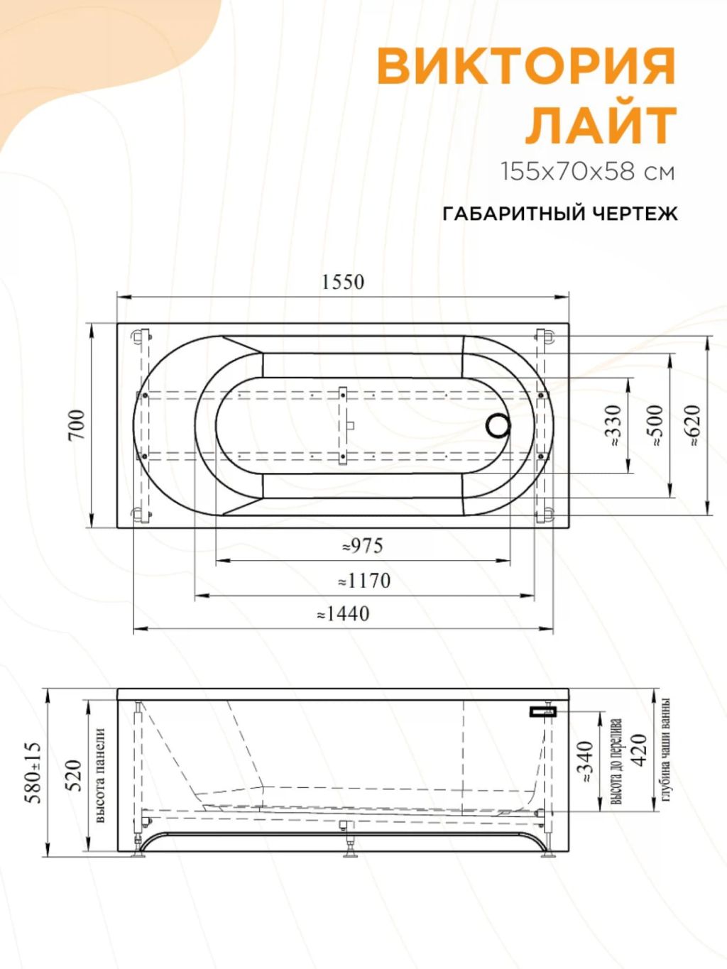 Ванна акриловая ВИКТОРИЯ ЛАЙТ 155х70*58, Radomir.
