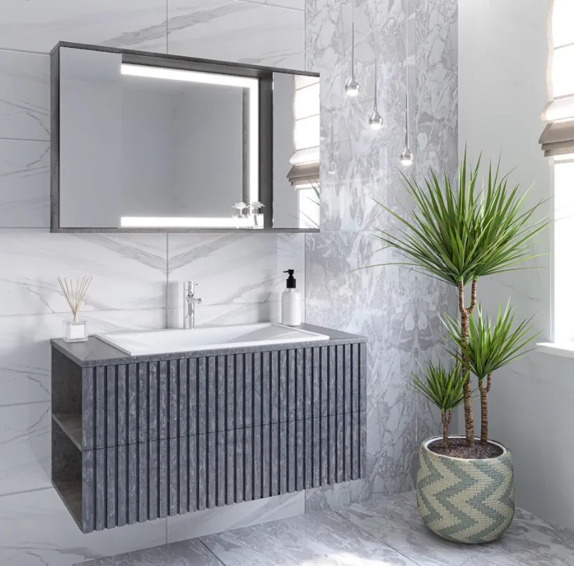 Зеркало-шкаф ДЭРРИ-100 ,серый/цемент,Stella Polar.